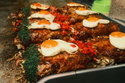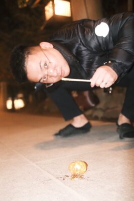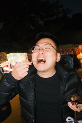 チョコバナナを買う宮内さんと矢野さん(笑) たこ焼きを美味しそうに食べる宮内さん
